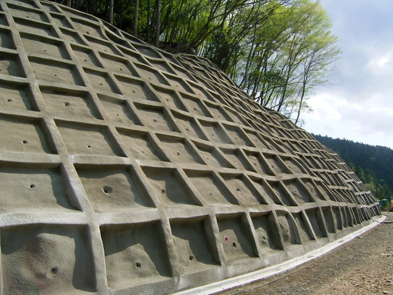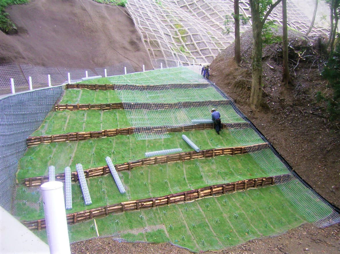 自然による侵食、崩落や地滑りを法枠工や植生工などにより防止する工事を行います。